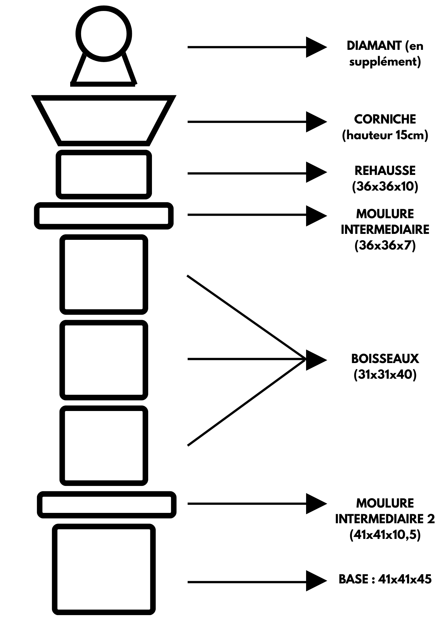 1 base pilier : 41 x 41 cm – Hauteur 45 cm
